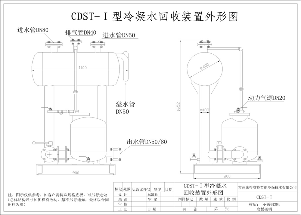 CDST-Ⅰ型冷凝水氣動(dòng)回收組合泵裝置(除底板)均為不銹鋼304制作,包括內(nèi)部機(jī)構(gòu),堅(jiān)固防蝕。